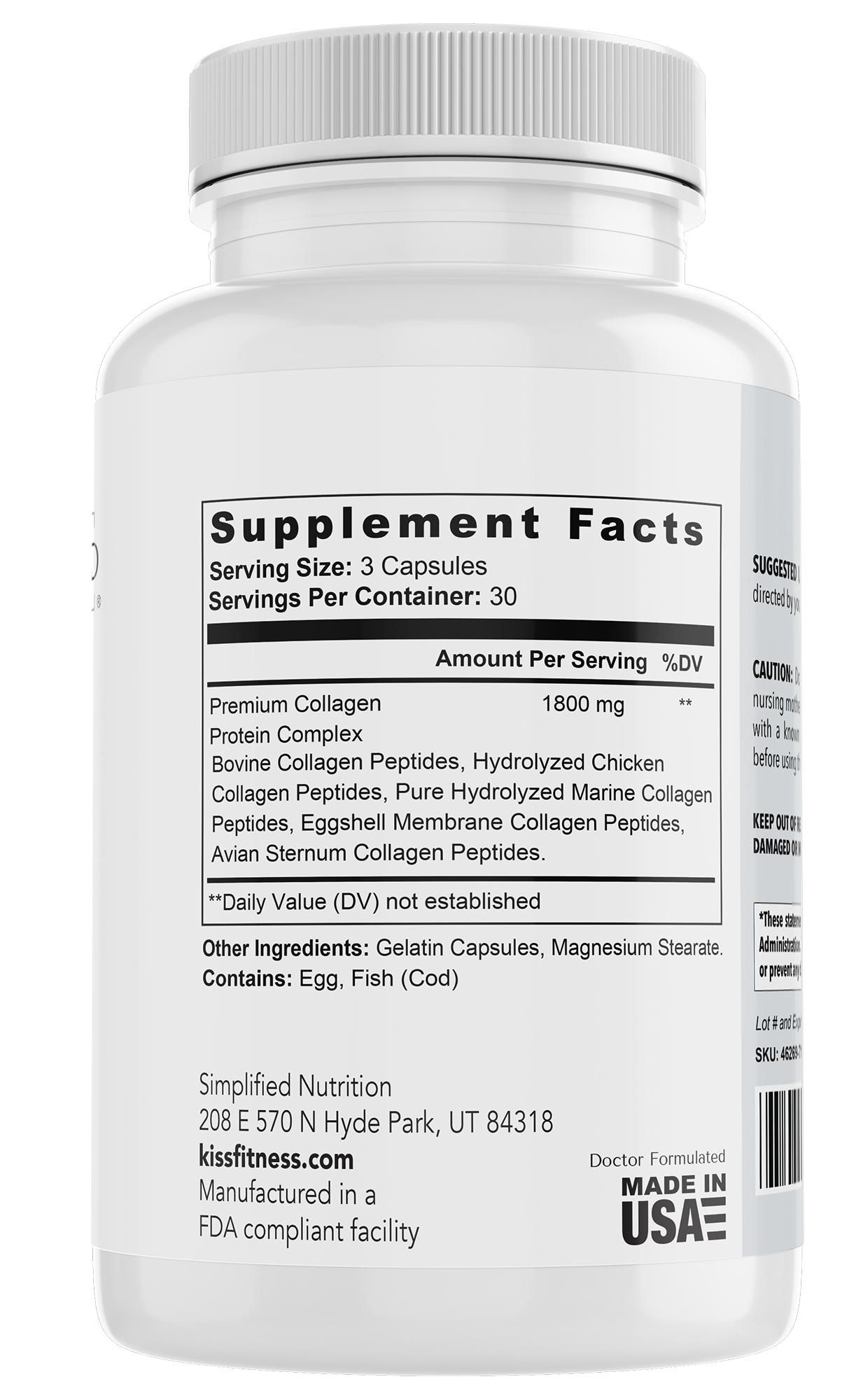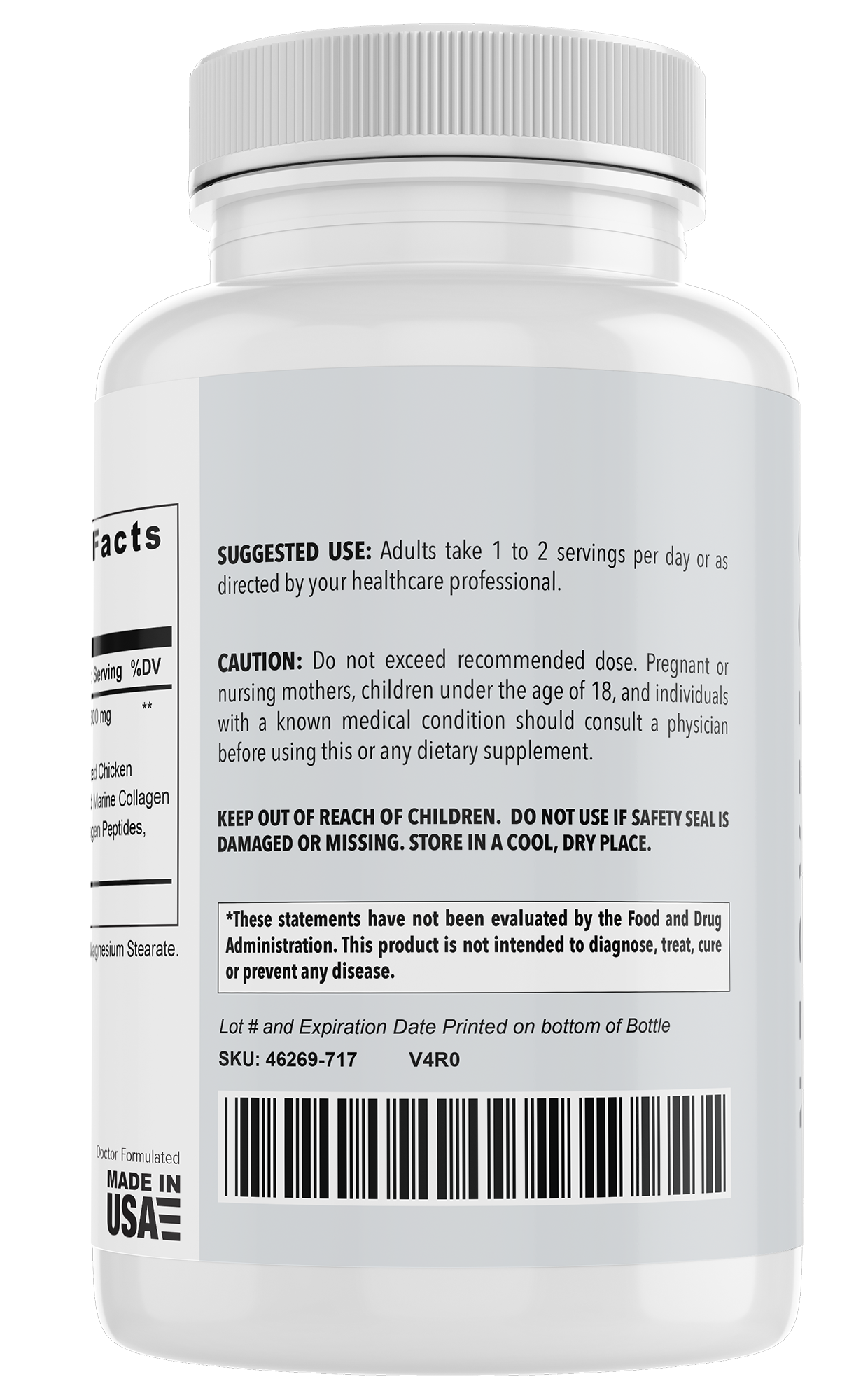 We exclusively use Hydrolyzed Collagen II- found in cartilage; it is primarily made up of the amino acids, glycine, proline and hydroxyproline. Hydrolyzed Collagen is also often referred to as Collagen Peptides or Collagen Hydrolysate. Hydrolyzed collagen is derived by denaturing collagen into smaller amino acid chains by heat or enzymatic processes. When it is hydrolyzed it forms into a gelatin. Hydrolyzed collagen has been shown to have some therapeutic benefits and should only be used to supplement and not replace essential proteins.